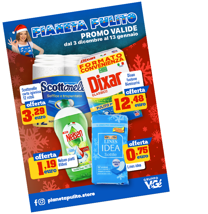 Il negozio di riferimento di ogni famiglia per l’acquisto di prodotti dedicati alla pulizia della casa e igiene della persona, casalinghi, profumeria, cosmetici e cartoleria. Entra nel mondo di Pianeta Pulito! Imperdibili offerte ti aspettano in tutti i nostri punti vendita.
